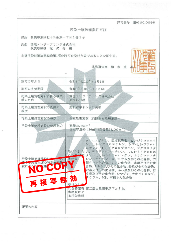 汚染土壌処理業許可証
